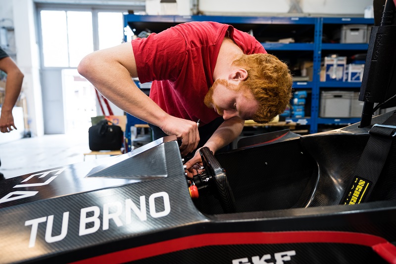 Kromě monopostu studenti postavili také nový simulátor, který má výkon a odezvu srovnatelnou se simulátory v profesionální formuli 1. Trénují na něm ti členové týmu, kteří by rádi usedli za volant. Piloty se nakonec stanou čtyři nejlepší. A ačkoliv pilotování monopostu vypadá na celém projektu jako největší zábava, je to docela tvrdá dřina. „Sportovní centrum VUT nám poskytuje trenéra, který s kandidáty na pilota dvakrát týdně posiluje partie potřebné pro řízení, a chodíme trénovat i na motokáry. Když jede formule třeba stokilometrovou rychlostí, na ruce pilota se z volantu přenáší síla až 20 Newton metrů, pak je skutečně namáhavé otočit volantem,“ upozorňuje Záňová.