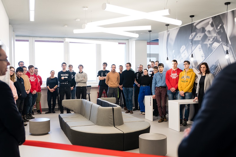Kuchyňka a modulární nábytek pro práci týmů i jednotlivců. Každé ze sedmi pater takzvaných kloubových hal, spojujících budovy A3 a A4 v areálu Fakulty strojního inženýrství VUT, se proměnilo v nové zázemí pro studenty. V úterý 7. února byly prostory symbolicky otevřeny za účasti vedení VUT i fakulty, přestřižení pásky se ujali děkan FSI Jiří Hlinka a rektor VUT Ladislav Janíček.