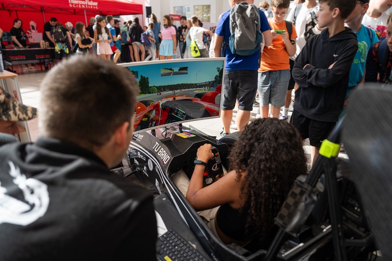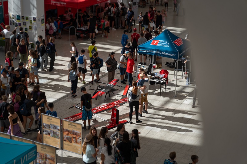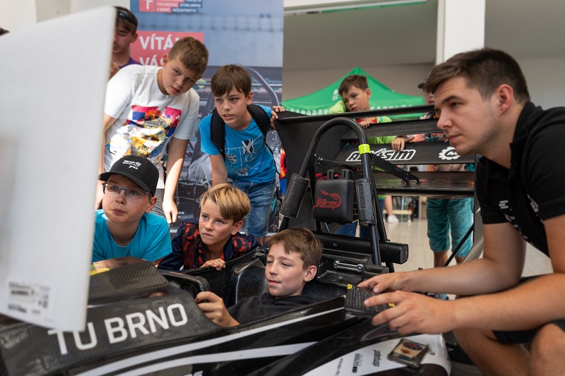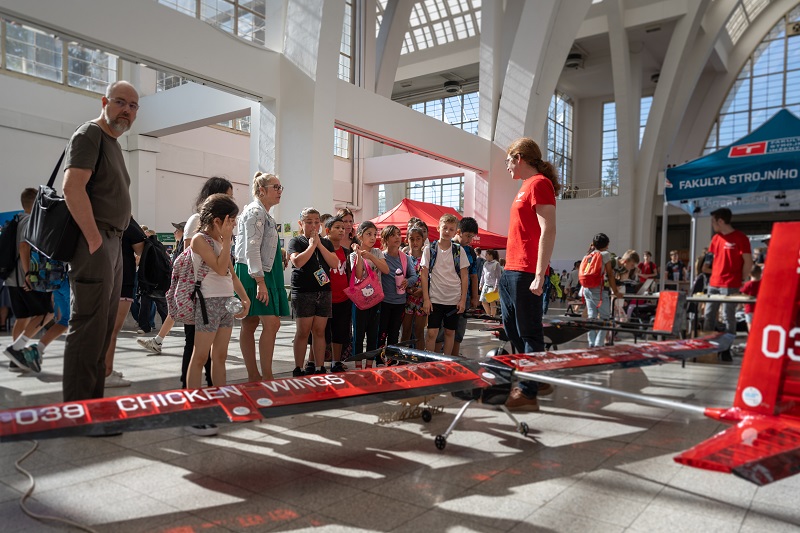 Fakultu na akci reprezentovaly hned čtyři týmy. Studenti z TU Brno Racing s sebou přivezli simulátor a na atraktivní pilotování formule „na zkoušku“ se jako vždy stála dlouhá fronta. Kdo měl hlavu víc v oblacích, mohl zavítat na sousední stánek Chicken Wings, kde byla k vidění studentská letadla a k vyzkoušení simulátor létání s rádiem řízeným modelem.