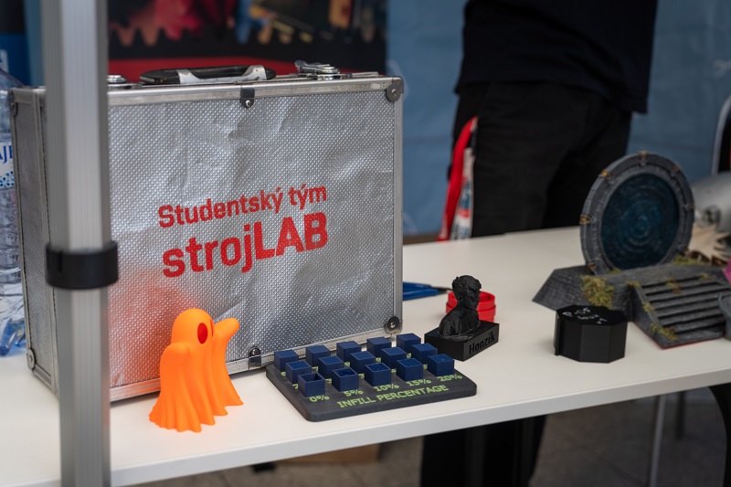 Stánek Mechlabu představil průřez světem technologie, kde se setkávají strojírenství, elektronika a informatika a nechyběla ani programovatelná stavebnice LEGO NXT. Na vedlejším stánku pak Studentský tým strojLAB představil svoji činnost včetně první generace ponorky ARGO a také výrobky z 3D tisku.