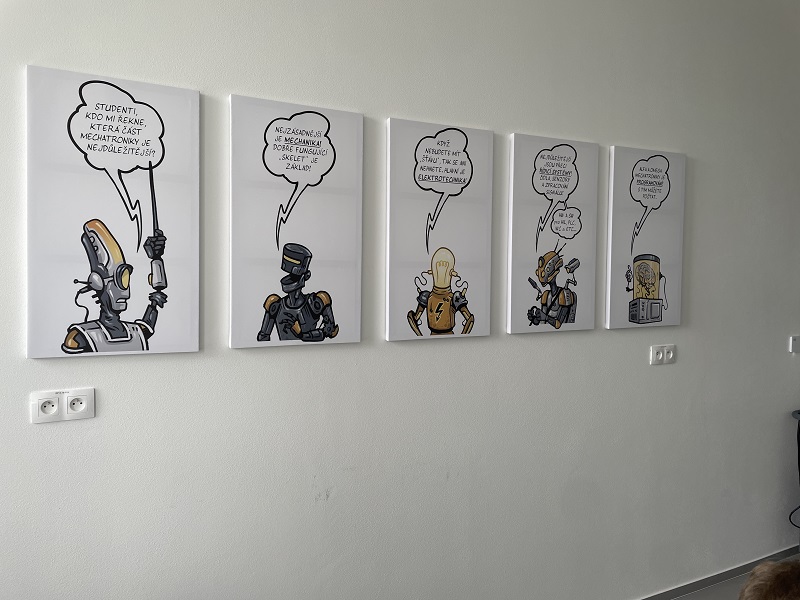 „Věřím, že na tom má svůj podíl i propagace a popularizace mechatroniky, na které systematicky pracujeme,“ míní Grepl. Možná ani vám neunikly chytlavé obrázky robotů či komiksy ze života mechatroniků, kterými se MechLab prezentuje. Nemálo energie vynakládá také na živé popularizační akce. „Máme za sebou osm ročníků soutěže pro středoškoláky Roboti@FSI, chystáme třetí ročník úspěšné Letní školy mechatroniky. Snažíme se nechybět na akcích jako je Festival vědy, Noc vědců a další,“ říká.