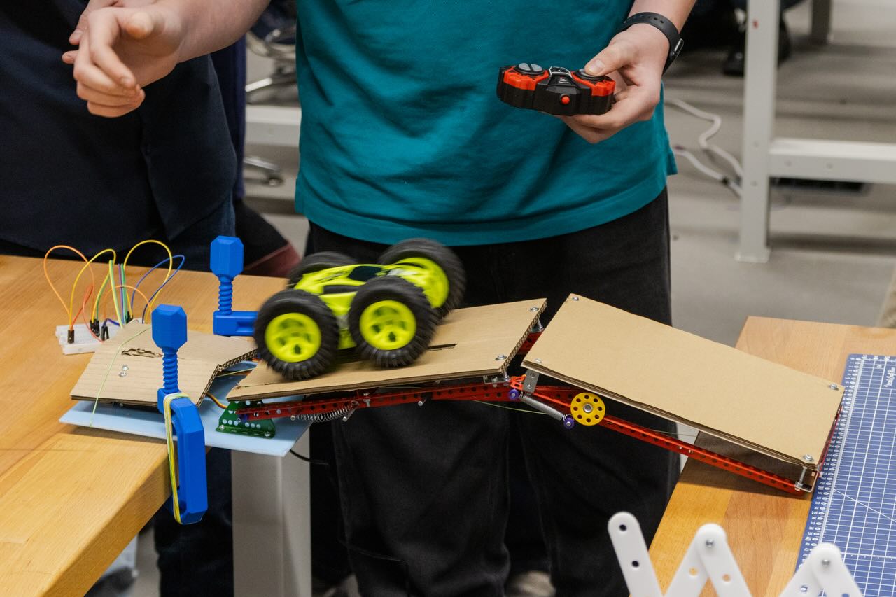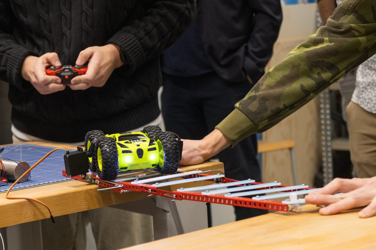 V dílnách strojLABu konstruování, kde se soutěž konala, bylo vidět všechno: rychlé skici na koleni, změny konceptu na poslední chvíli, laser i 3D tisk v akci a hlavně týmová práce. Hackathon v praxi – omezené zdroje, omezený čas a maximální soustředění.
