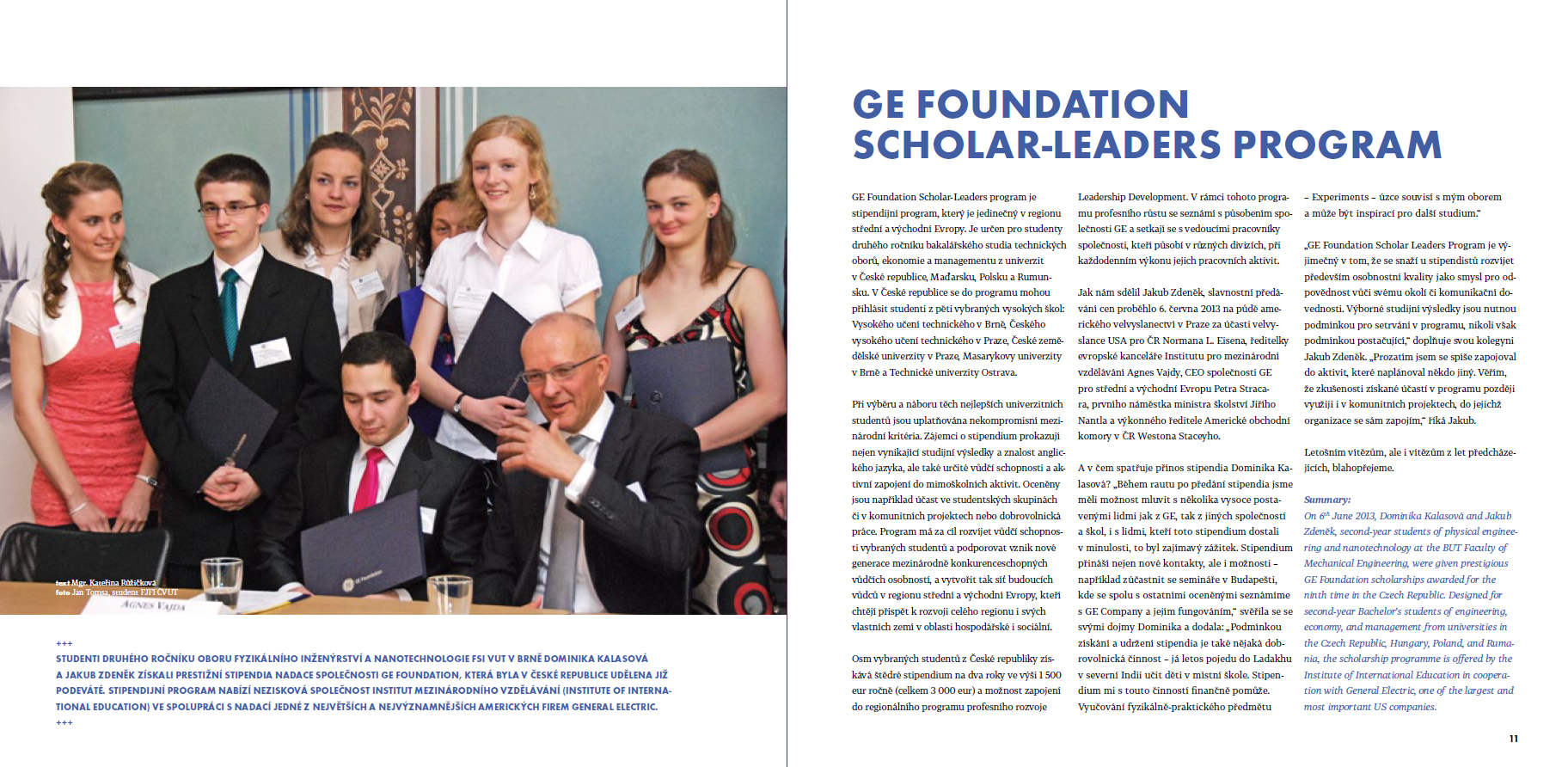 Studenti druhého ročníku oboru Fyzikálního inženýrství a nanotechnologie FSI VUT v Brně Dominika Kalasová a Jakub Zdeněk získali prestižní stipendia nadace společnosti GE Foundation, která byla v České republice udělena již podeváté.