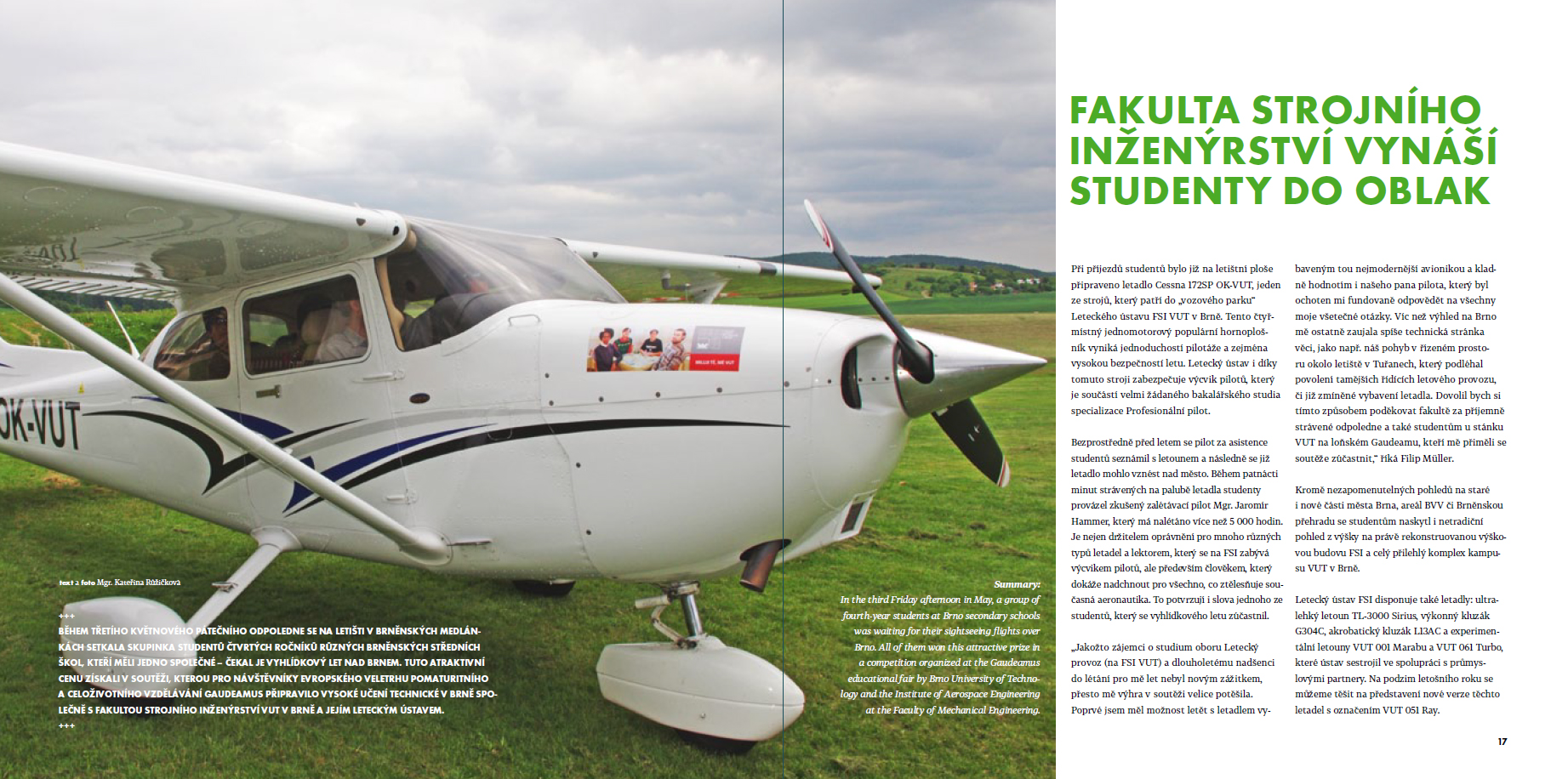 Tuto atraktivní cenu získali v soutěži, kterou pro návštěvníky Evropského veletrhu pomaturitního a celoživotního vzdělávání Gaudeamus připravilo Vysoké učení technické v Brně společně s Fakultou strojního inženýrství VUT v Brně a jejím Leteckým ústavem.