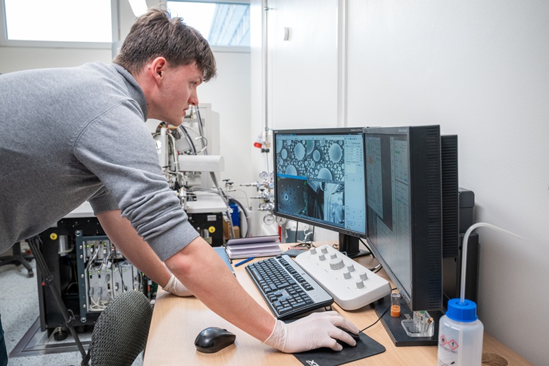 “Last year, the University of Arizona published a study showing a completely unique use of this microscope: they connected a conductive circuit for measuring a material’s electrical properties directly with the electron beam. We are testing a similar approach as well. In my thesis, I focus on analysing the electrical properties of semiconductors,” Ulč explains.