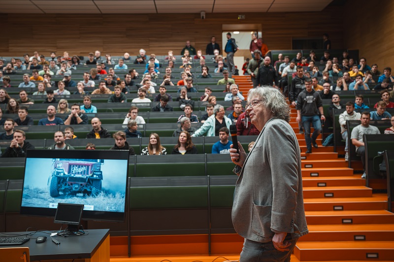 At the same time, a lecture by David Svída from the Institute of Automotive Engineering, who took part in this year's race with his colleague directly in the team of Aleš Loprais, started. The lecture was intended for students and staff of the faculty, the topic was more about the technique part of the race car than the racing itself. Engineers from the institute have long been working on the development of engines and other components for this demanding rally. The lecture was part of the Automotive Engineering course.
