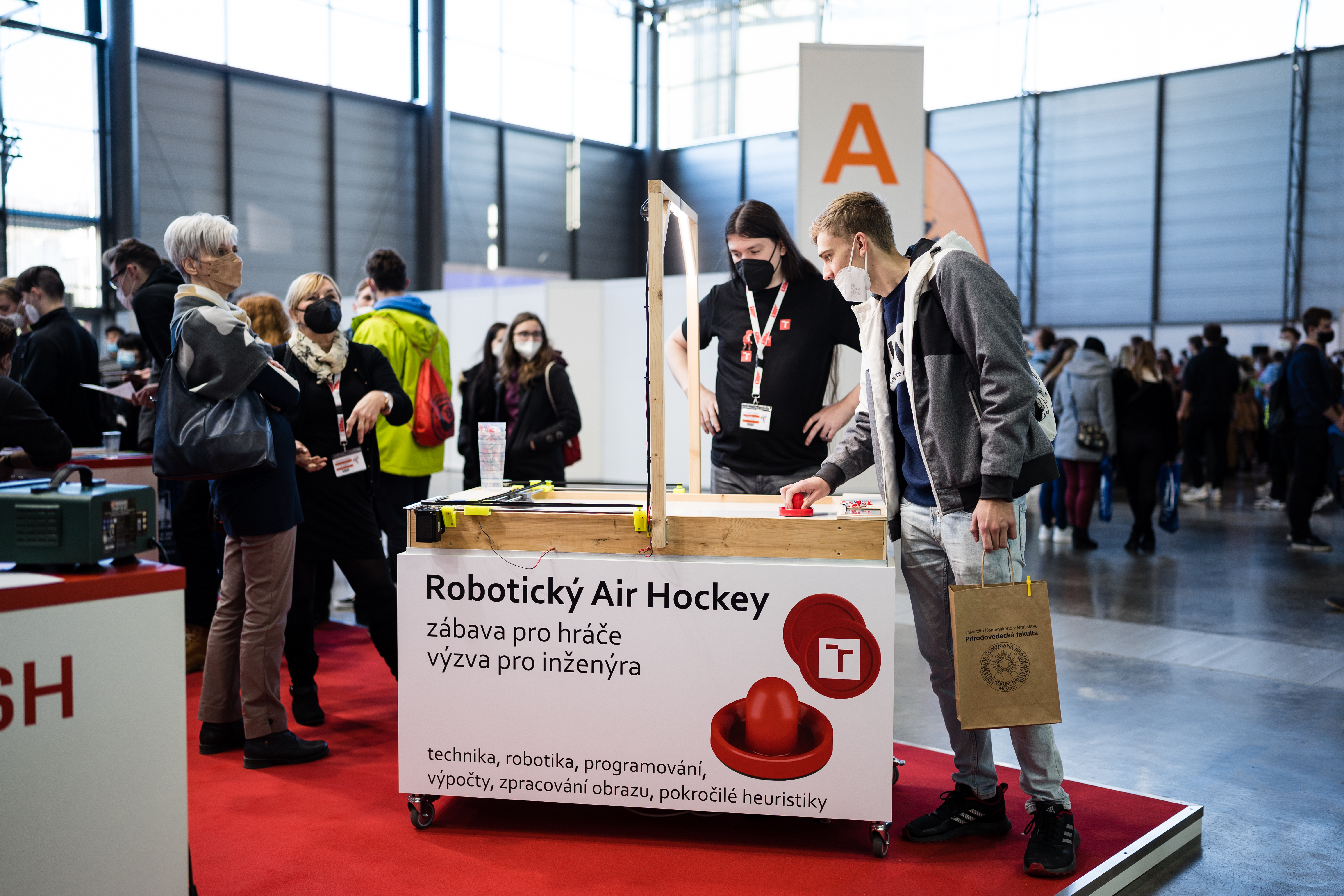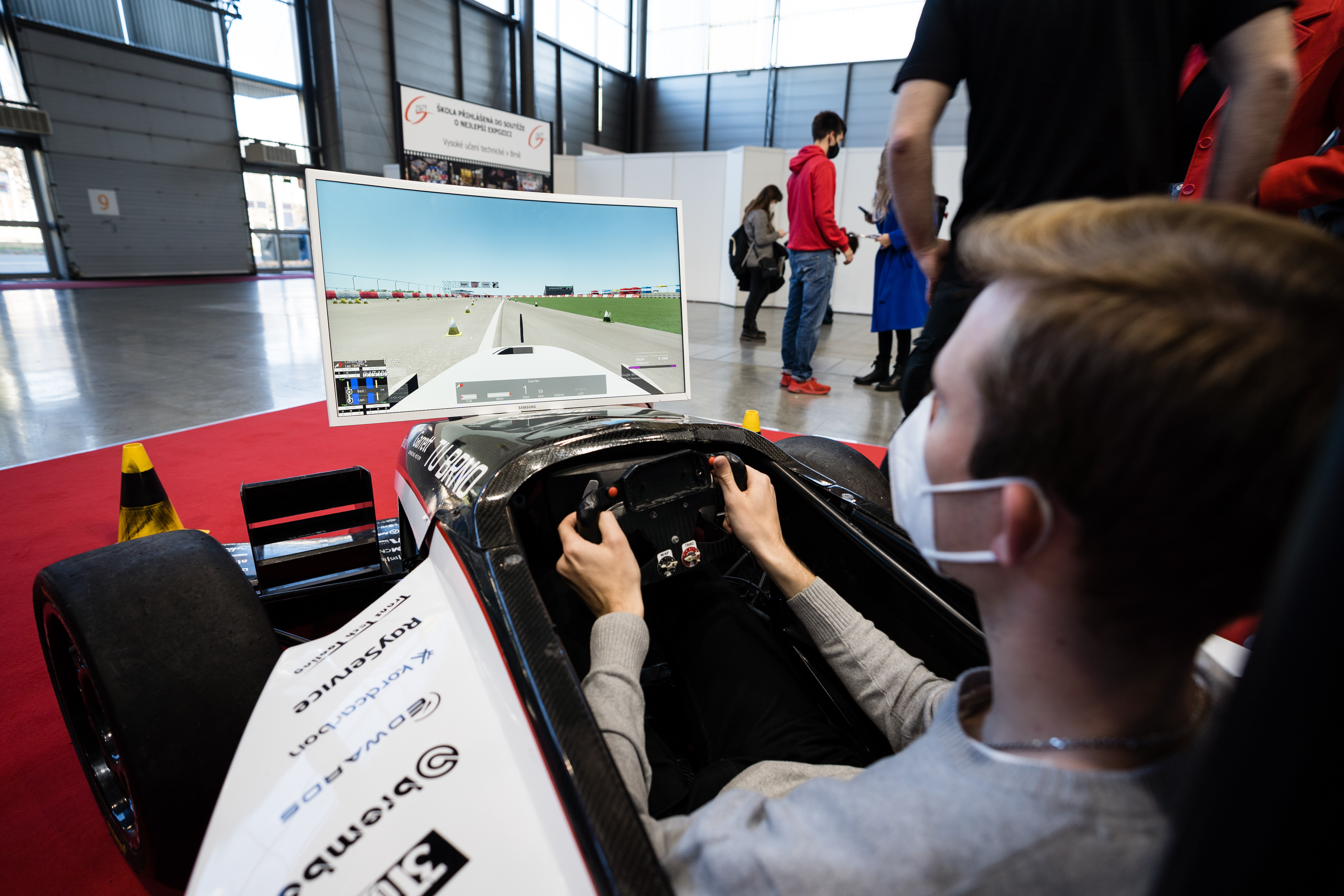 Fakulta strojního inženýrství se společně s dalšími fakultami představila na stánku VUT, kde si zájemci o techniku mohli osahat mechatronické modely, zkusit porazit neviditelného protihráče ve vzdušeném hokeji, projet se na závodní dráze v simulátoru studentské formule i vyzkoušet virtuální realitu.