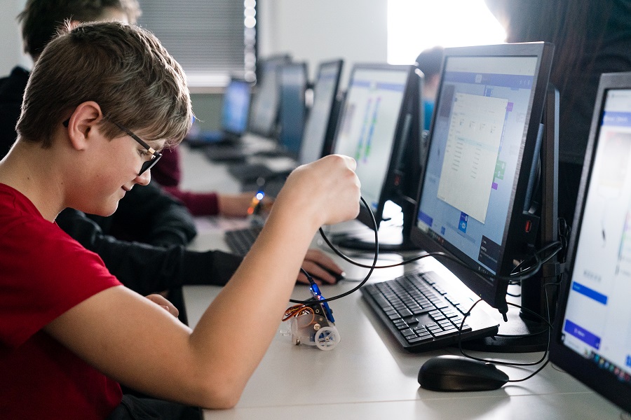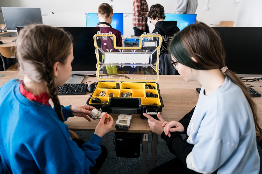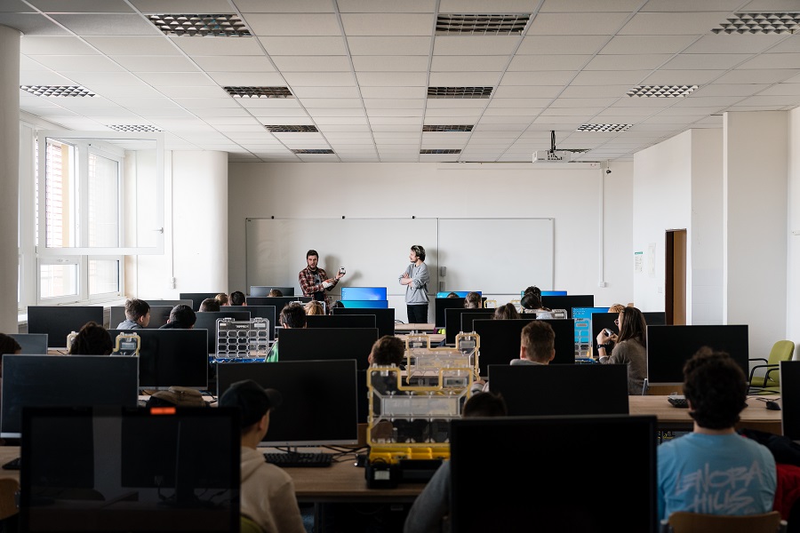 Po úvodní přednášce se žáci rozdělili. Měli na výběr ze dvou workshopů „Ukaž, co dokážeš s LEGO MINDSTORMS“ a „Programování a robotika je to, co nás baví“.