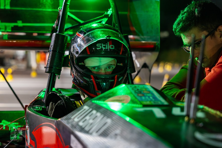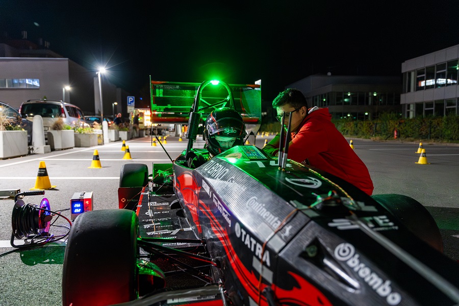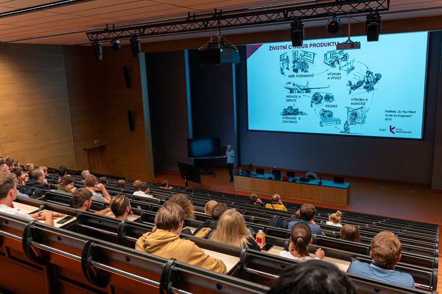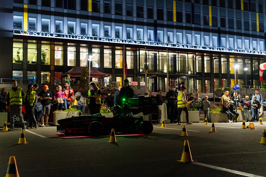 Program čekal návštěvníky už před fakultou. Na parkovišti probíhaly ukázky jízdy studentské elektrické formule Dragon e3, před vstupem do budovy si mohli prohlédnout pojízdnou laboratoř Ústavu automobilního a dopravního inženýrství a k vidění bylo také mobilní osvětlení pro malá letiště z dílny Leteckého ústavu.