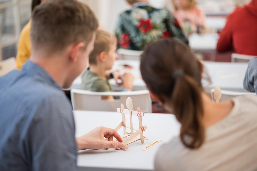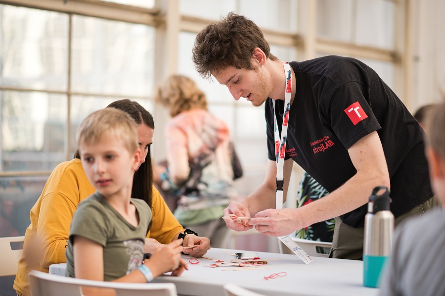 Studenti z týmu strojLab prezentovali podvodní dron s názvem Argo, který je určený k průzkumu zatopených podzemních prostorů. Součástí jejich programu byl také workshop, kde si návštěvníci měli příležitost pomocí špachtlí a gumiček vytvořit vlastní katapult.