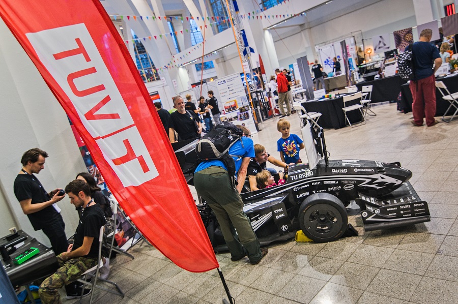 Fyzikálními pokusy bavili studenti z Ústavu fyzikálního inženýrství, mechatronická zařízení rozpohybovali studenti z týmu MechLab. Také jsme představili studentkou formuli, pneumobil i letoun našich týmů TU Brno Racing, Pneumobil Racing Team a Chicken Wings.