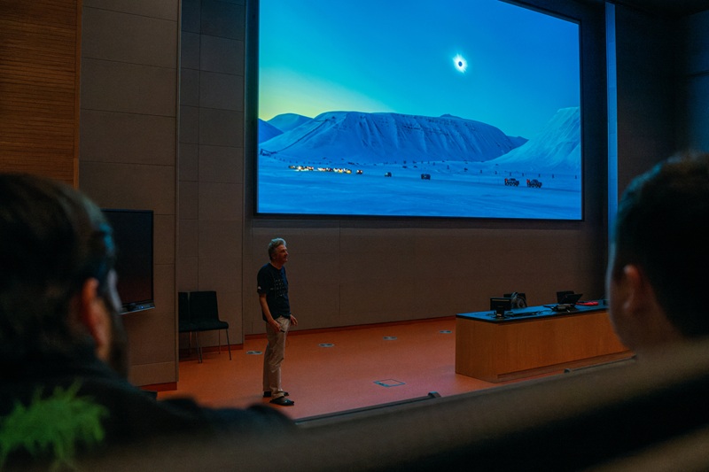 „Po oficiálním zahájení výstavy za přítomnosti vedení fakulty měli členové fotoklubu možnost zúčastnit se workshopu, kde Nikon-specialista radil, jak na černobílý portrét, a zároveň si zde mohli vyzkoušet profesionální fototechniku značky Nikon. Vernisáž byla zakončena přednáškou profesora Druckmüllera o fotografování na Špicberkách. Návštěvníci přednášky si mohli při příchodu prohlédnout na stáncích před aulou fototechniku Nikon a osvětlovací techniku Fomei,“ říká vedoucí fotoklubu Václav Široký.