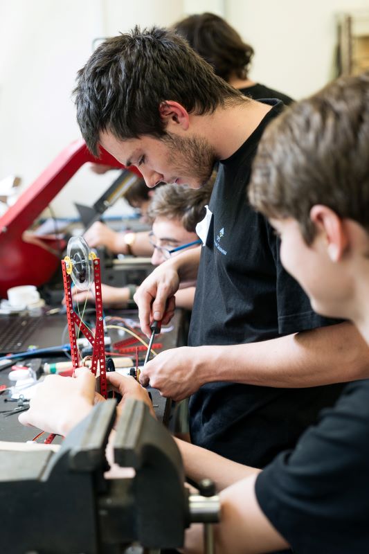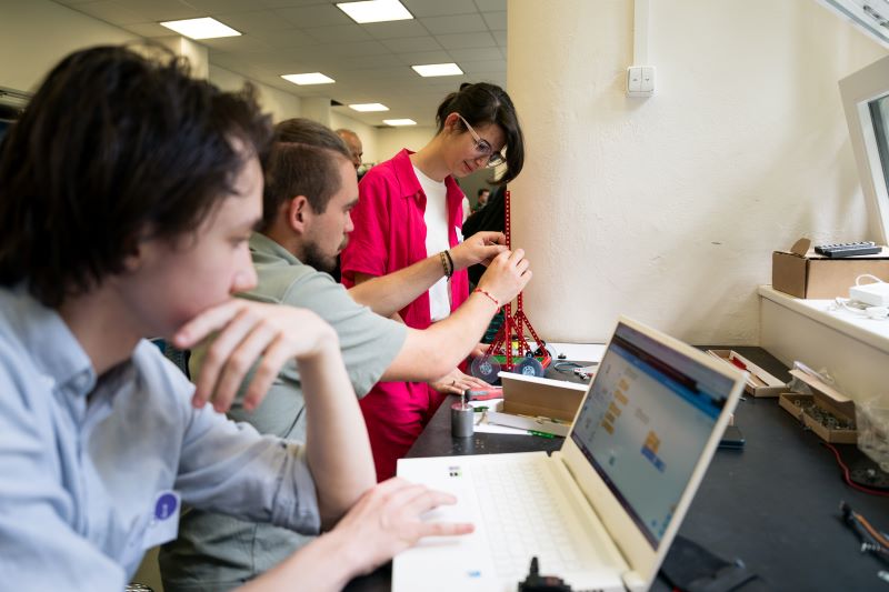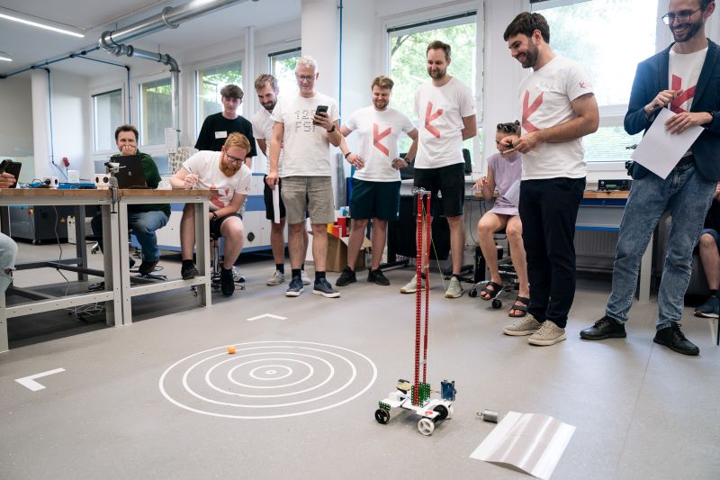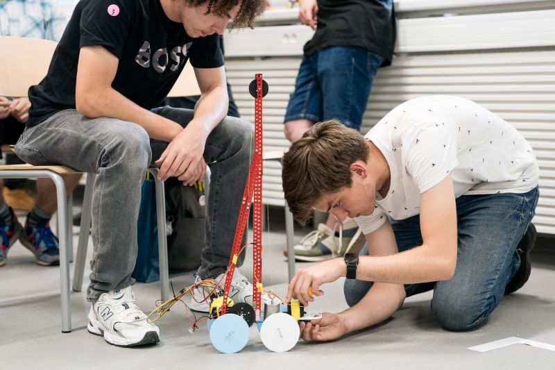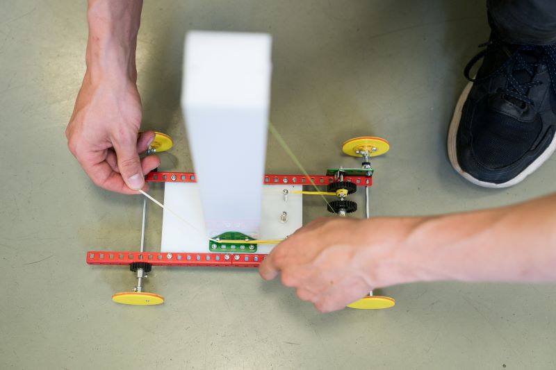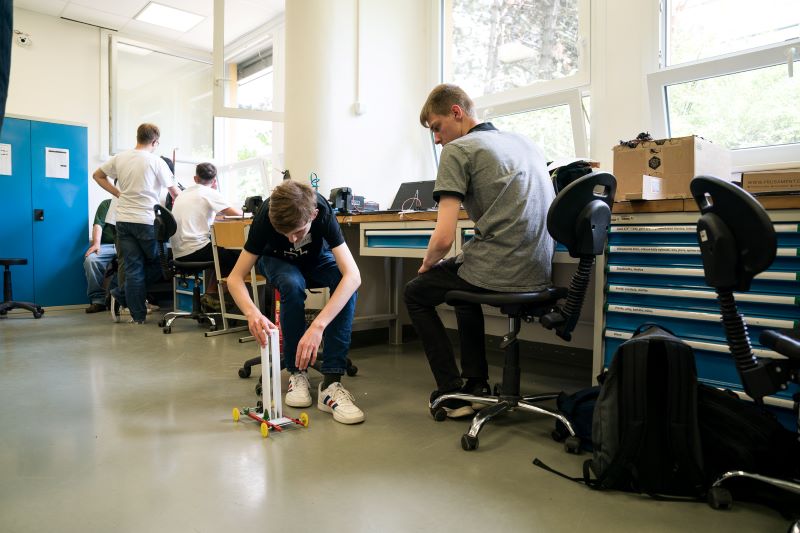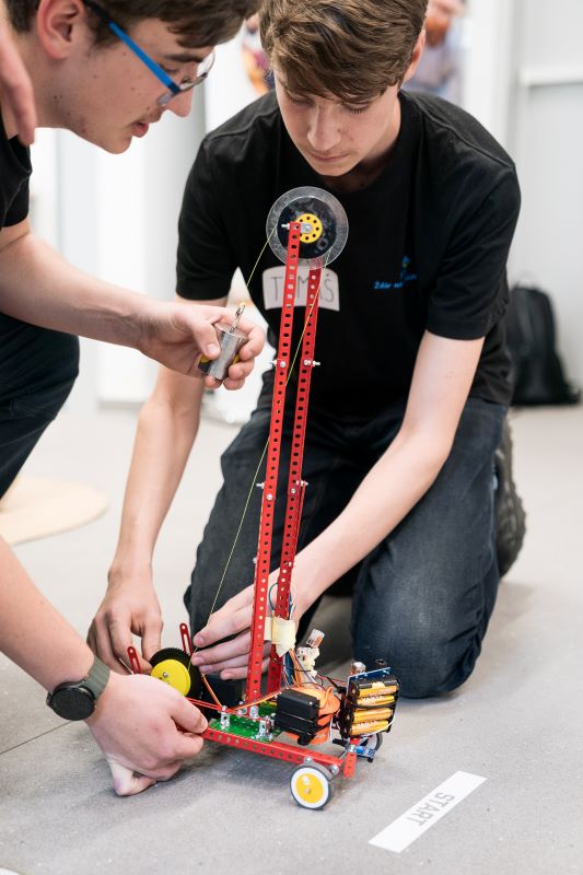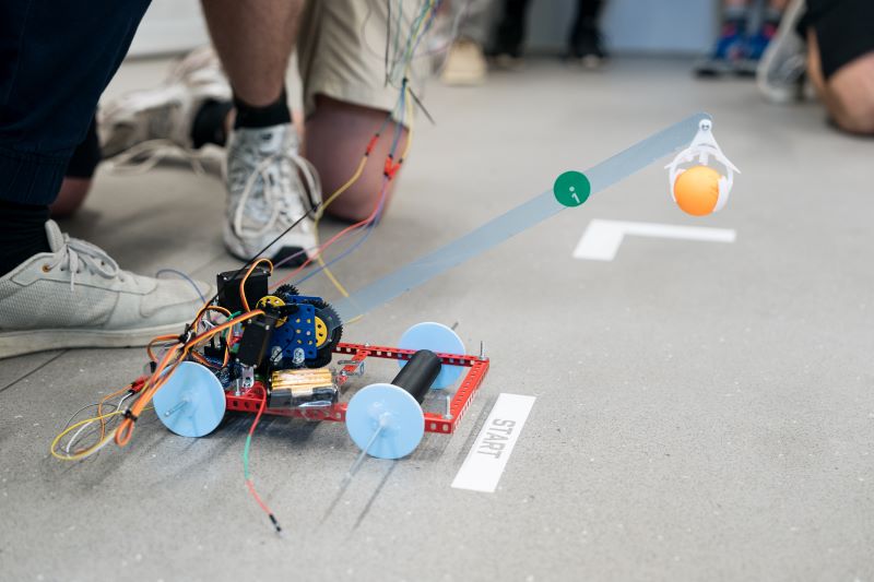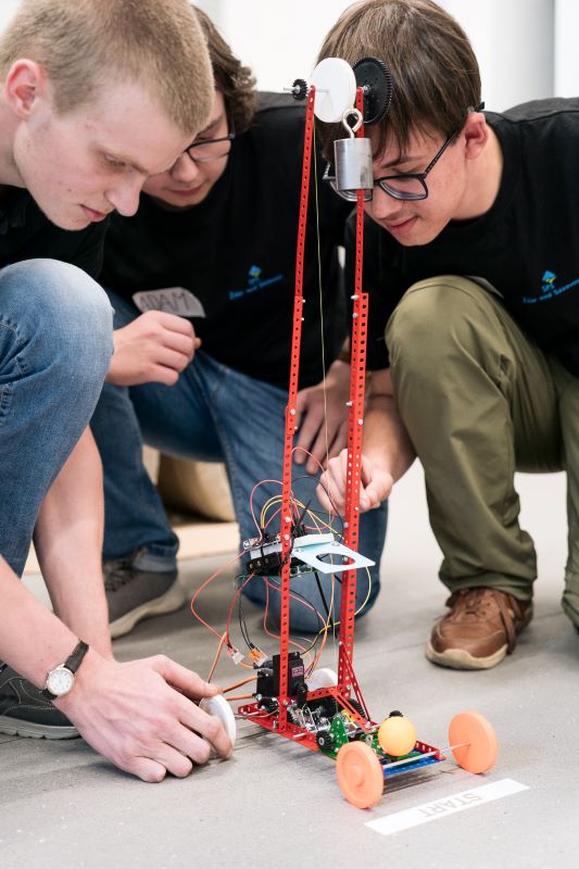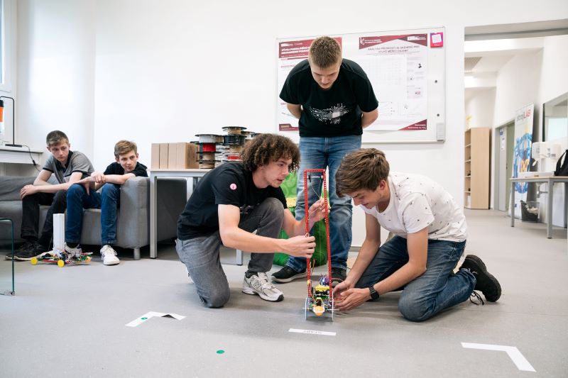 Sestavit vozítko s mechanismem, který po signálu míček na určeném místě pustí, nebo stroj, který míček vystřelí takovou rychlostí, že doletí přesně na střed? Strategií, které se studenti rozhodli zvolit, bylo více. David Škaroupka chválil všech osm studentských týmů za to, jak samostatně dokázaly pracovat, vyhledávat informace a improvizovat.