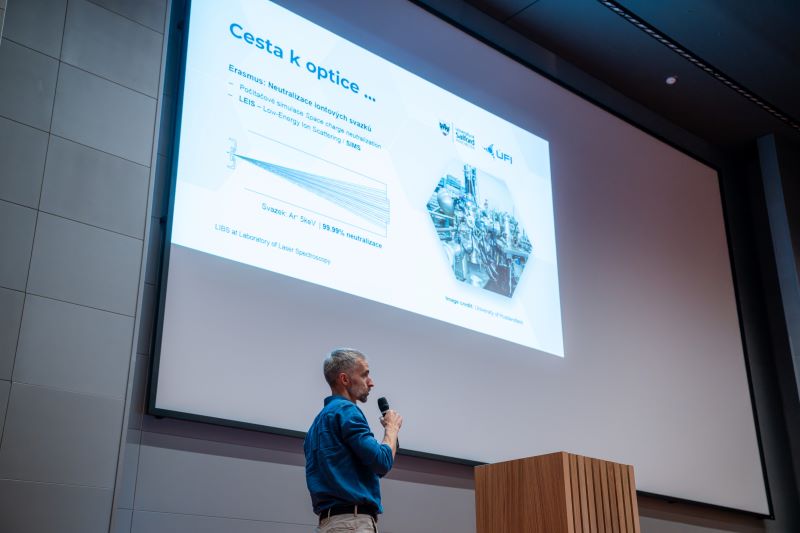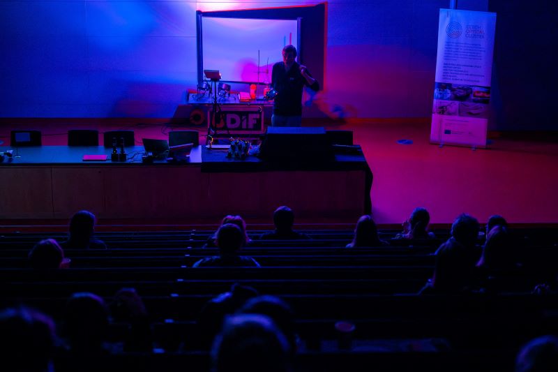 Cesty absolventů studia na ÚFI, exkurze do laboratoří, představení Českého optického klastru, přednášky firem nebo vystoupení Úžasného divadla fyziky (ÚDiF) – Den optiky 2025 nabídl všem 130 účastníkům velmi pestrý program. „Naše pozvání přijali ředitel Evropské mikroskopické společnosti Vladislav Krzyžánek, zástupce Českého optického klastru Petr Přikryl, ředitel Ústavu přístrojové techniky Josef Lazar, ale také zástupci devíti firem z oboru,“ popsala za organizátory Dne optiky 2025 Věra Kollárová z ÚFI.