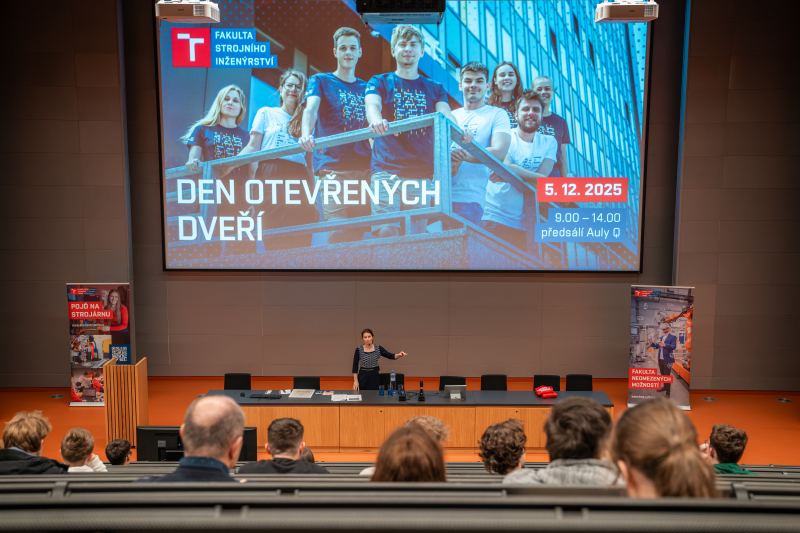 V pátek 5. prosince se na Fakultě strojního inženýrství uskutečnil Den otevřených dveří. Návštěvníkům se představily nejen jednotlivé ústavy a studentské týmy, ale také například centrum Alfons pro studenty se specifickými potřebami. V rámci programu proběhly dvě prezentace o studiu v aule Q a zájemci měli možnost nahlédnout do laboratoří a dílen, diskutovat s vyučujícími, studenty i studijními ambasadory. Celkem dorazilo rekordních 480 zájemců o studium.