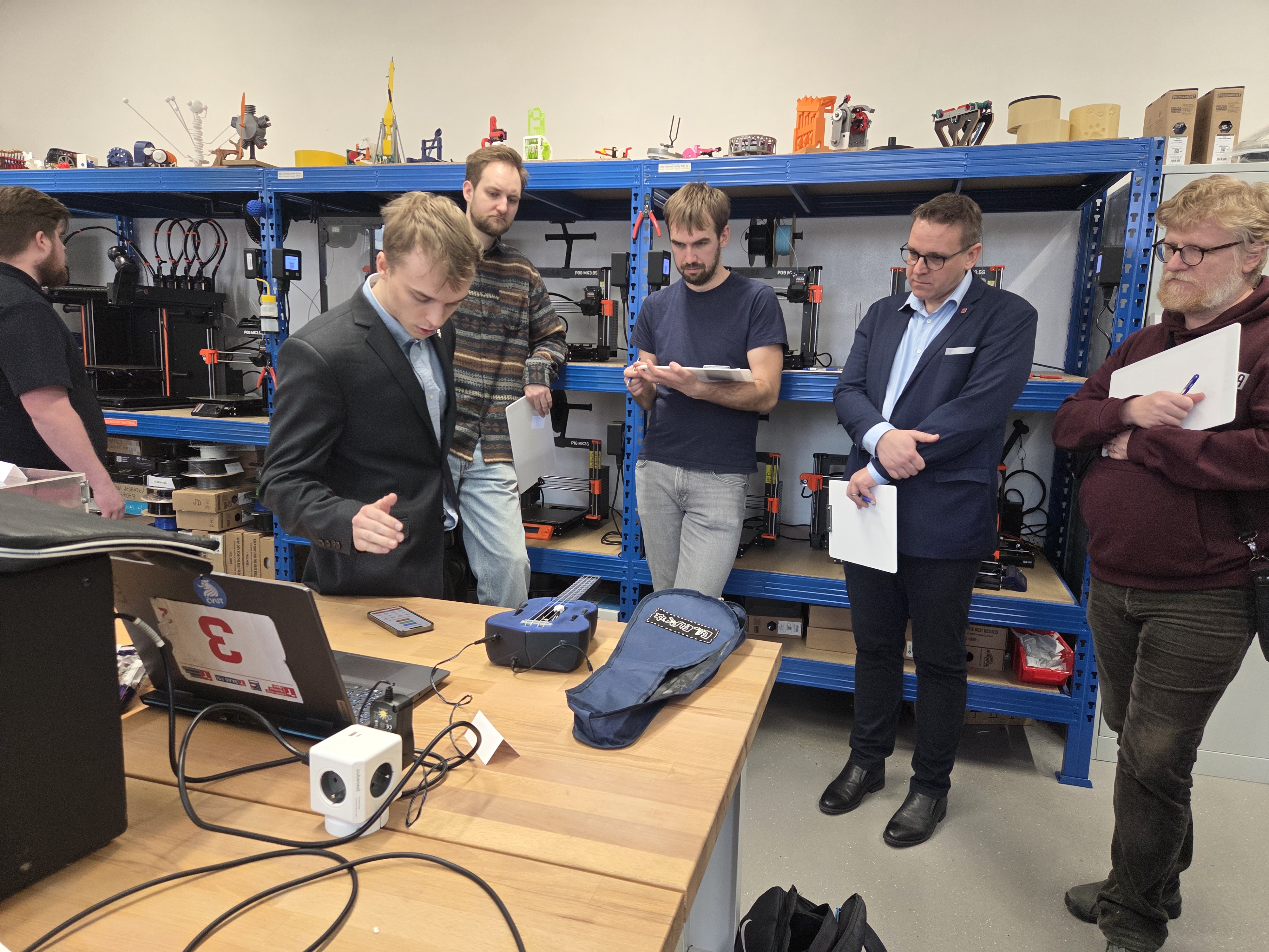 K hodnocení projektů přizvali pedagogové VUT i zástupce z praxe, například zakladatele FabLab Brno a ředitele VIDA! Science centra Tomáše Mejzlíka, Tanguye Prevota z PIP Safety nebo Miroslava Molínka z Honeywellu. Vznik velmi prakticky orientovaného předmětu na Ústavu konstruování podpořil rektor VUT Ladislav Janíček.