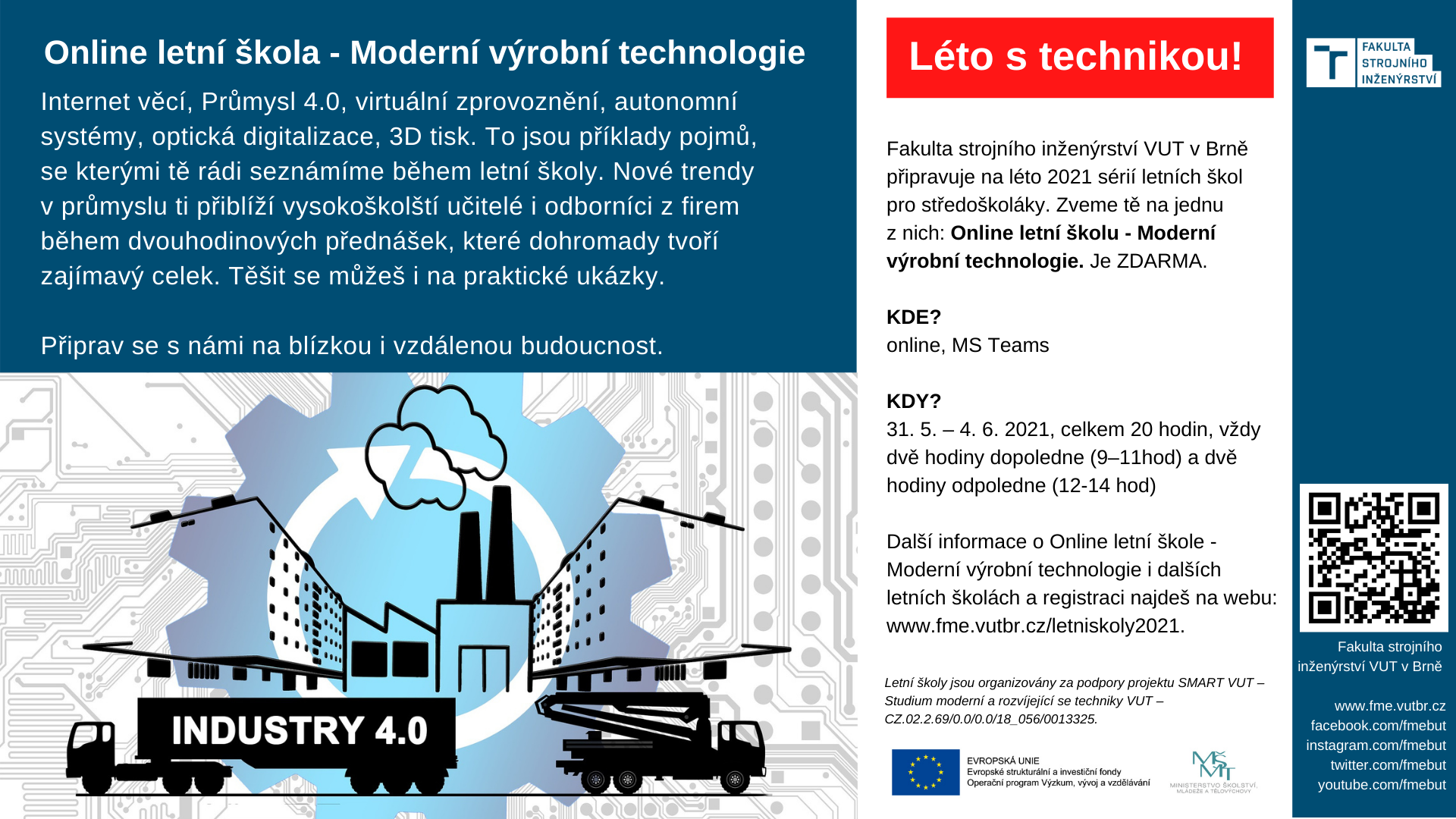 Užijte si LÉTO S TECHNIKOU s odborníky z vysoké školy, Ústavu strojírenské technologie VUT v Brně, i přímo z firem!