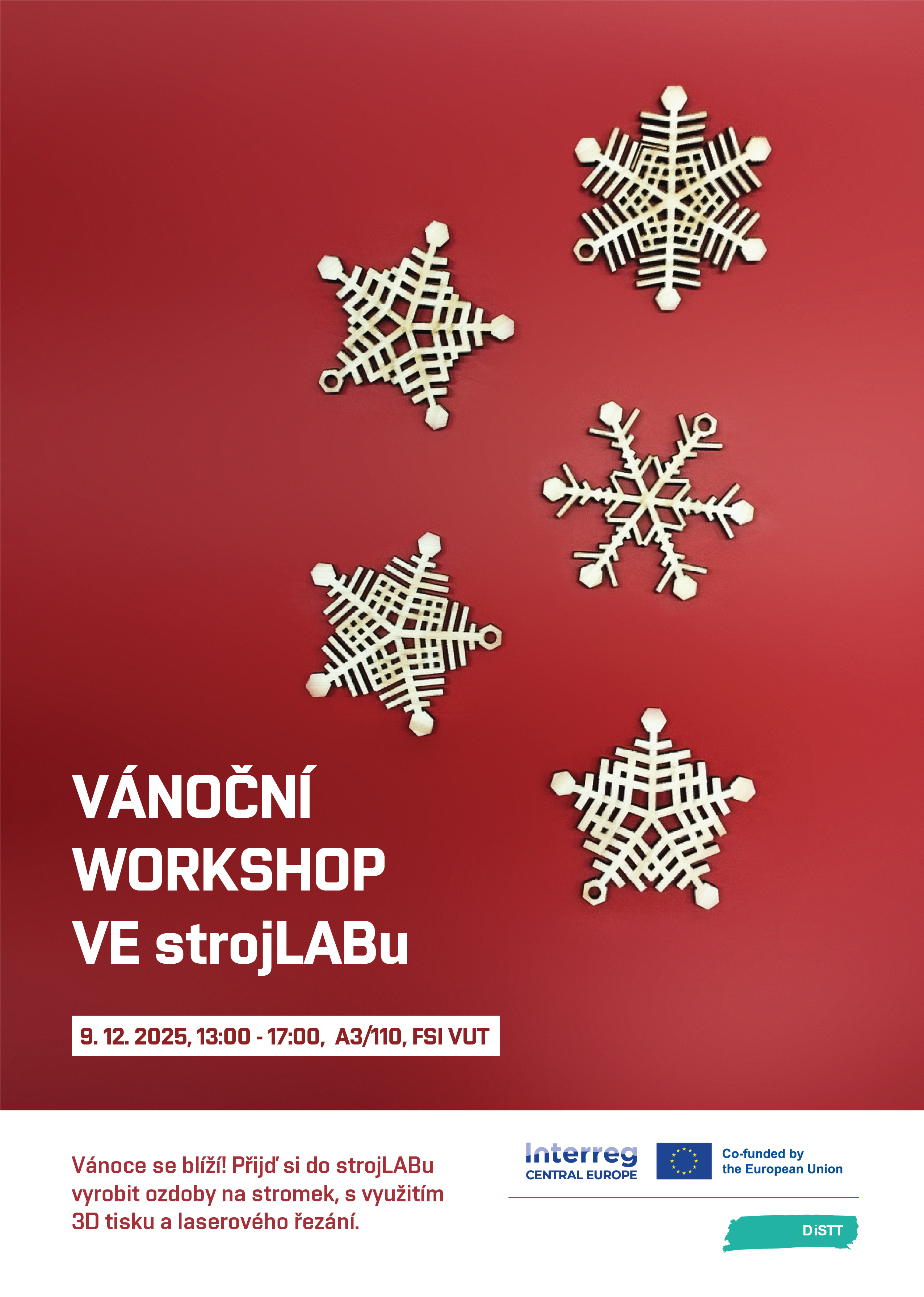 V úterý 9. prosince od 13:00 do 17:00 pořádáme ve strojLABu workshop výroby vánočních ozdob pro studenty, zaměstnance i absolventy. Zastavte se třeba i jen na chvíli a zkuste si vyrobit vylaserovanou vločku nebo 3D vytištěnou baňku. Workshop se koná v A3/110. Vytvořte si krásnou památku na rok 2025 z FSI!
