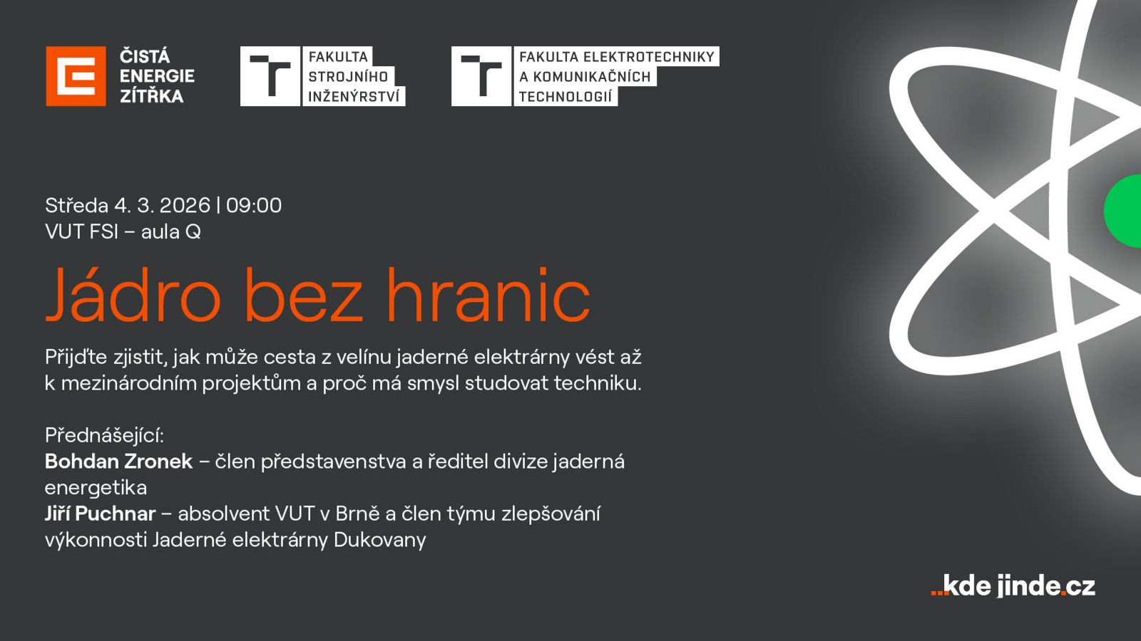 Přednášející: Bohdan Zronek (člen představenstva a ředitel divize jaderná energetika) a Jiří Puchnar (absolvent VUT v Brně a člen týmu zlepšování výkonnosti jaderné Elektrárny Dukovany)