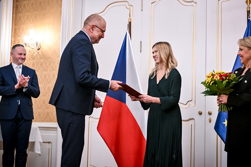 Michaela Hošková si pro cenu z rukou ministra školství přijela až ze Švédska, kam po absolvování studií fyziky na FSI odjela na doktorát. Tamní technická univerzita Chalmers ji, jako jednu ze dvou úspěšných, vybrala ze stovek kandidátů na prestižní „Excellence PhD Position“ v oblasti nanověd a nanotechnologií. Její cesta za úspěchem však v žádném ohledu nebyla přímočará, jak sama říká, věda je hlavně o překonávání překážek. Ve své práci se věnuje výzkumu Casimirovy síly, která je přímým měřitelným projevem kvantové fyziky. Celý rozhovor s Michaelou Hoškovou najdete zde.