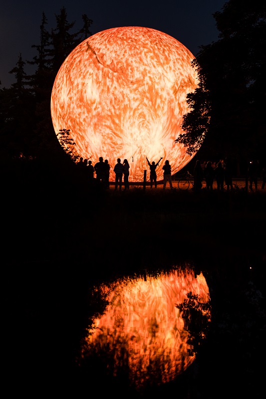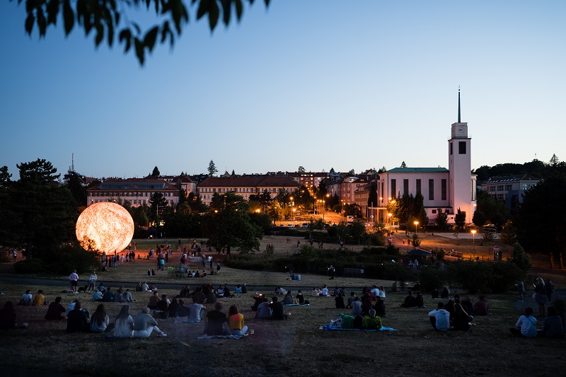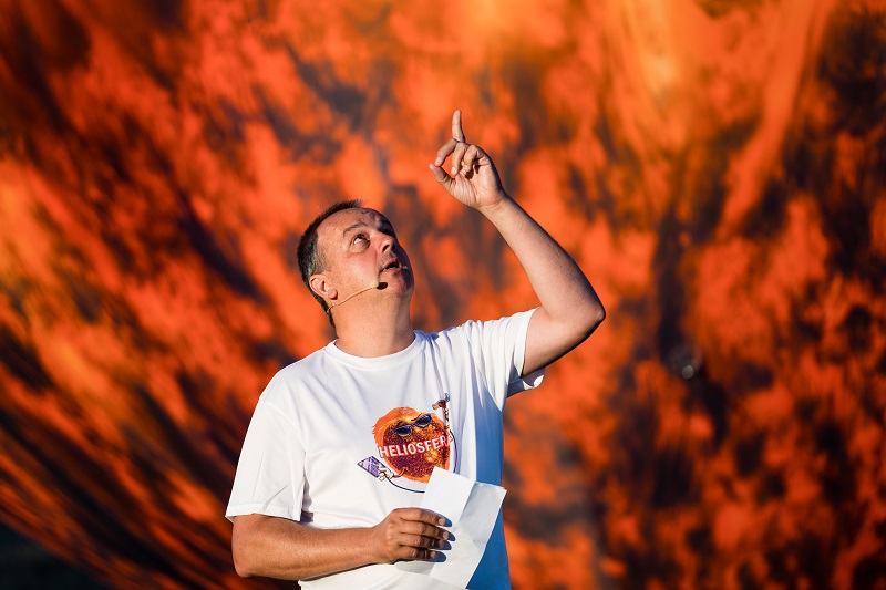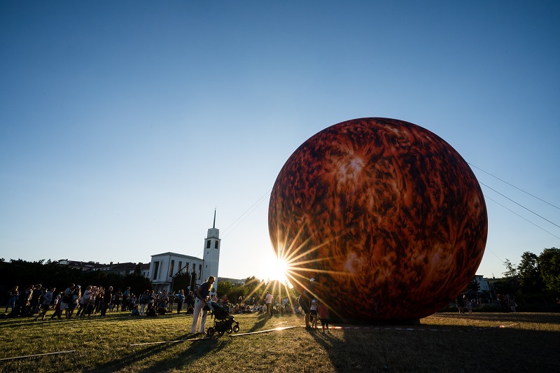 Desetimetrová nafukovací koule rozzářila večer na brněnské Kraví hoře. Model Slunce nazvaný Heliosféra připravila tamní hvězdárna. Kromě jejích zaměstnanců na výrobě spolupracovali absolventi VUT Jan Machát s Michal Okleštěk z uskupení VISUALOVE a stejně jako předchozí modely byl i tento vyroben v dílnách brněnské firmy Kubíček Factory.