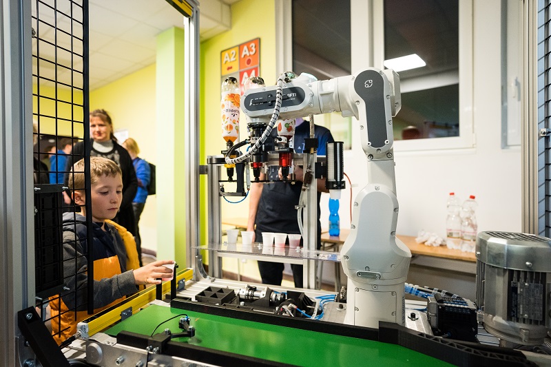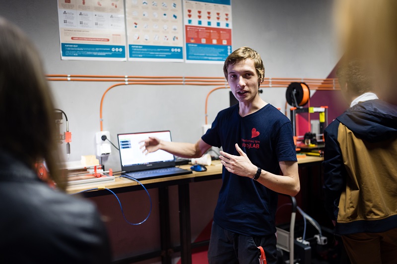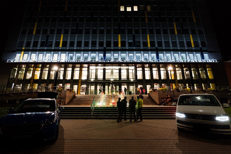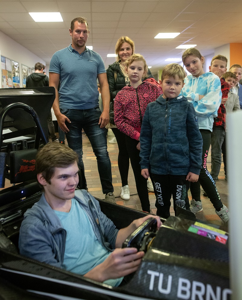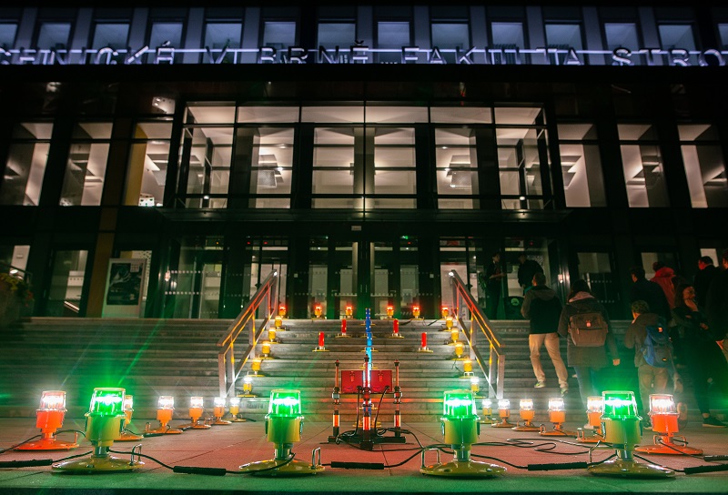 Program čekal návštěvníky už před fakultou: na parkovišti před A1 mohli navštívit FabLab kamion, před vstupem do budovy si mohli prohlédnout pojízdnou laboratoř Ústavu automobilního a dopravního inženýrství a do vstupní haly je „nasměrovalo“ mobilní osvětlení pro malá letiště z dílny Leteckého ústavu.