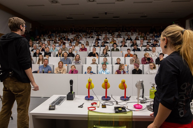 O dvě představení Úžasného divadla fyziky byl obrovský zájem. Na přednášku profesora Miloslava Druckmüllera dorazilo dokonce tolik posluchačů, že se musela přesunout z přednáškové místnosti P1 do auly Q, která byla i tak zcela zaplněna.