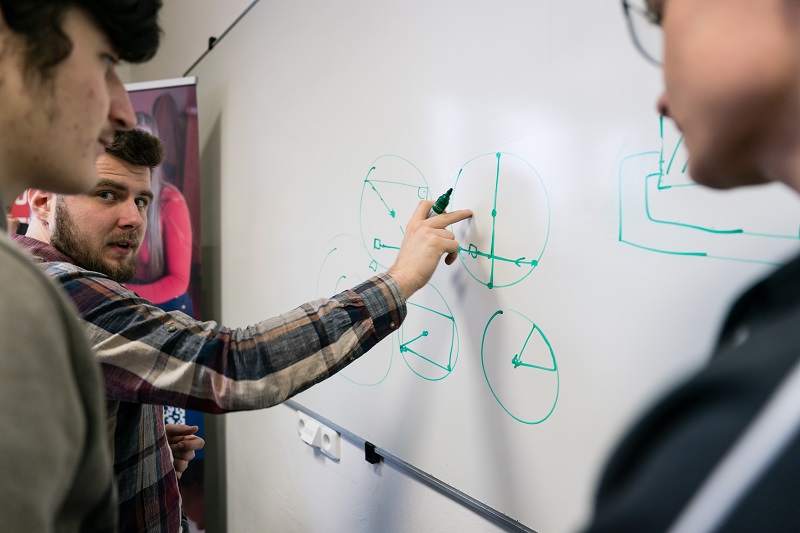 Jedním z nich byl tým Tečka. „Jsme tři ze dvou různých škol: z brněnské střední školy v Olomoucké ulici a ze Strážnice. Na soutěži nás lákala robotika, ale taky možnost získat prominutí přijímaček na fakultu,“ vysvětlil Jan Vavřík, který byl v týmu Tečka spolu s kamarády Adamem Doležalem a Miroslavem Ševčíkem. S otázkou jak udržet svého sumo-robota na šikmé ploše a zároveň porazit soupeře si zkusili poradit po svém. „První model robota jsme zavrhli, teď tvoříme druhý, pásový, který má nízko položené těžiště a doufáme, že bude stabilní,“ dodal Honza.