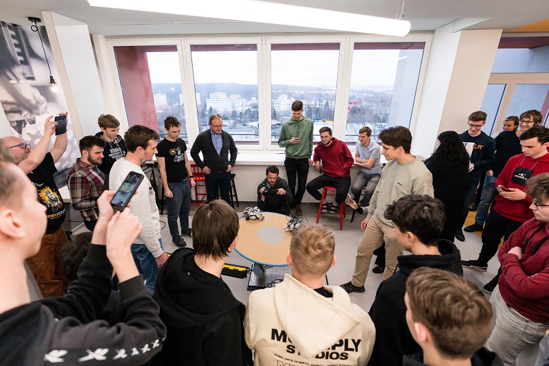 Takový souboj robotů, zkonstruovaných středoškoláky v rámci soutěže Roboti@FSI, strojní fakulta ještě nezažila. Boj sumo-robotů probíhal na šikmé plošině, která se díky robotickému rameni sama hýbala a nakláněla. Souboj nakonec nejlépe ustál robot týmu DSSG z pražské Smíchovské střední průmyslové školy a gymnázia.