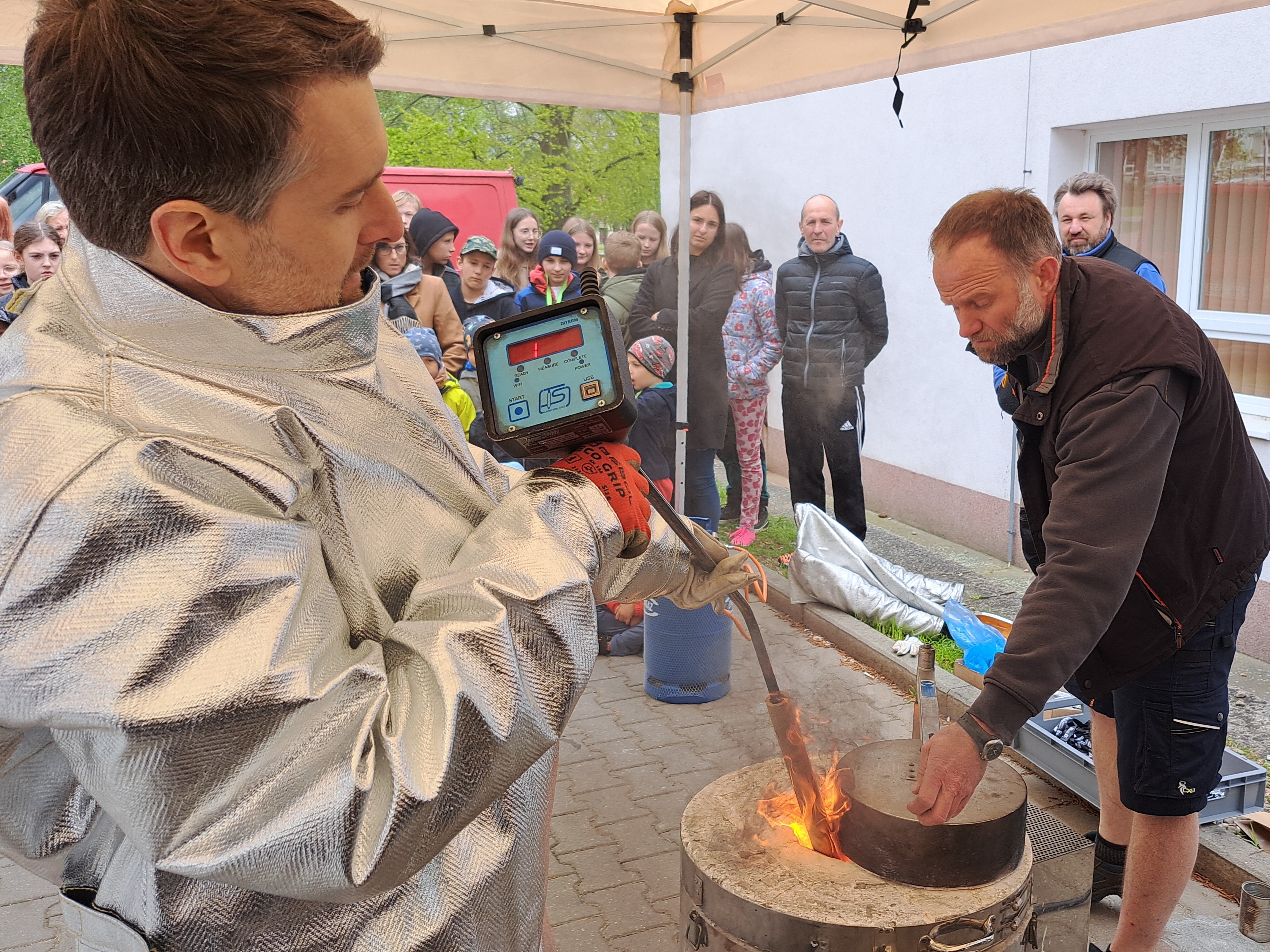 Dvojice kolegů z Ústavu strojírenské technologie se tak 22. dubna vydala do obce, kam se na odlévání přišli podívat tamní obyvatelé a žáci základní školy. A bylo to prý velmi vděčné publikum. Pro Ondřeje Štočka se nejednalo o první zkušenost s odléváním zvonu. „Nejsem samozřejmě zvonař, to je zcela samostatný obor, ale nějaké zvony už za sebou mám. Největší, pětatřicetikilový, je v městském parku v Tišnově,“ vzpomíná Štoček.