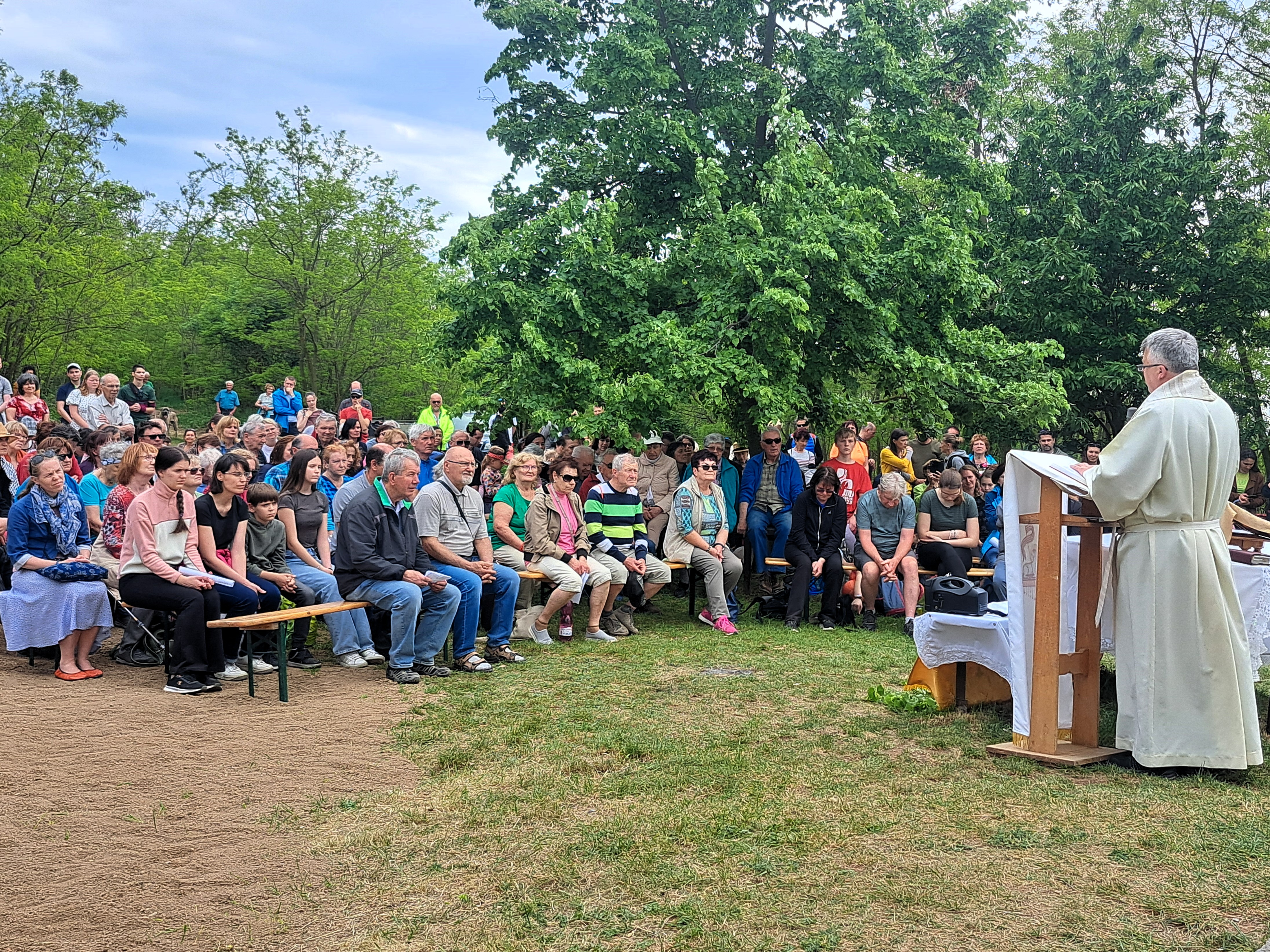 Odlévání se povedlo a ořechovští se tak 1. května mohli vydat na tradiční pouť na Peregrinek. Dorazilo na tři sta věřících, kteří přihlíželi požehnání nové zvonice.