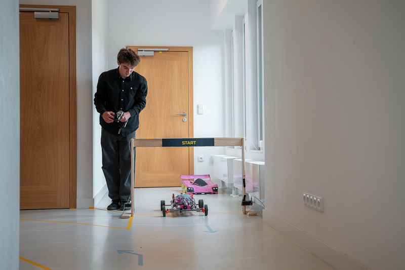 „Všichni mají stejné podmínky, co se týče vstupní energie: litrovou láhev stlačeného vzduchu, natlakovanou na sedm barů. Pak už jde jen o efektivitu jejich řešení, kolik energie dokáží přenést do kol autíčka,“ říká Michalec a dodává, že finálové závody měly hned tři disciplíny. „První byl maximální dojezd na láhev. Druhou klasický okruh – protože jde o autíčka na dálkové ovládání, studenti tím ukázali, jak s nimi dokáží manévrovat. Poslední disciplínou byl sprint, tedy kdo dokáže nejrychleji ujet danou vzdálenost,“ přiblížil Michalec.