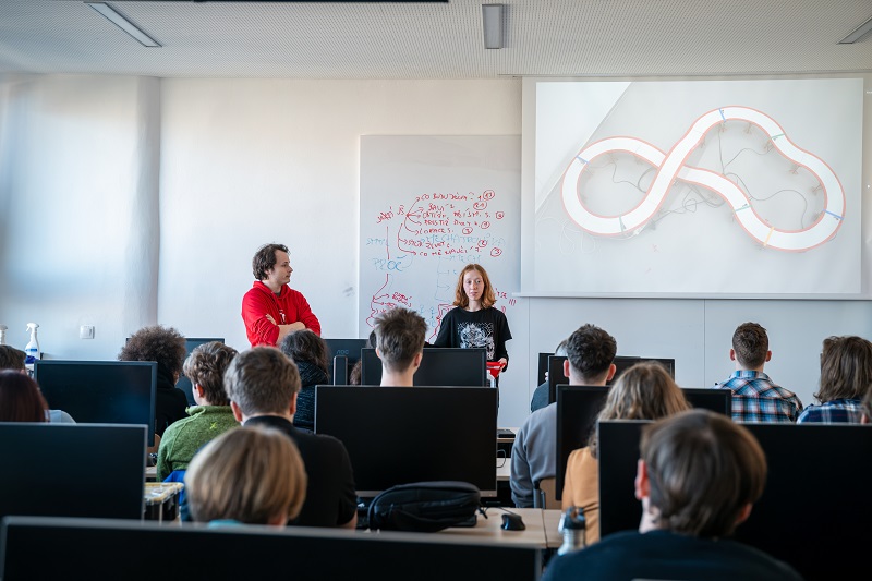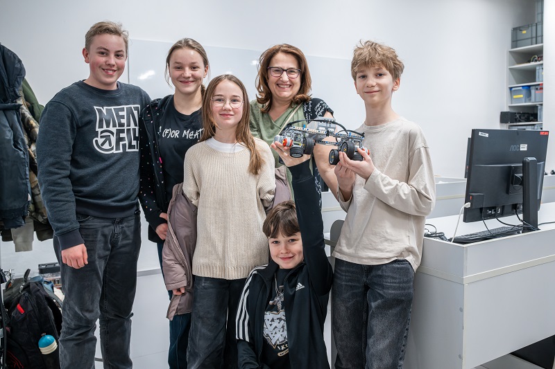 Mezi účastníky je letos i o poznání mladší skupinka. „Jde o žáky nedaleké základní školy LABYRINTH. Chtěli se přijít podívat, tak jsme je vzali takzvaně mimo soutěž, aby si mohli úkol taky vyzkoušet,“ potvrzuje Němečková. Dvojice dívek, které zrovna testují svého robota, obratem dodává, že se na soutěž rády přihlásí i oficiálně, až budou studovat na střední škole.