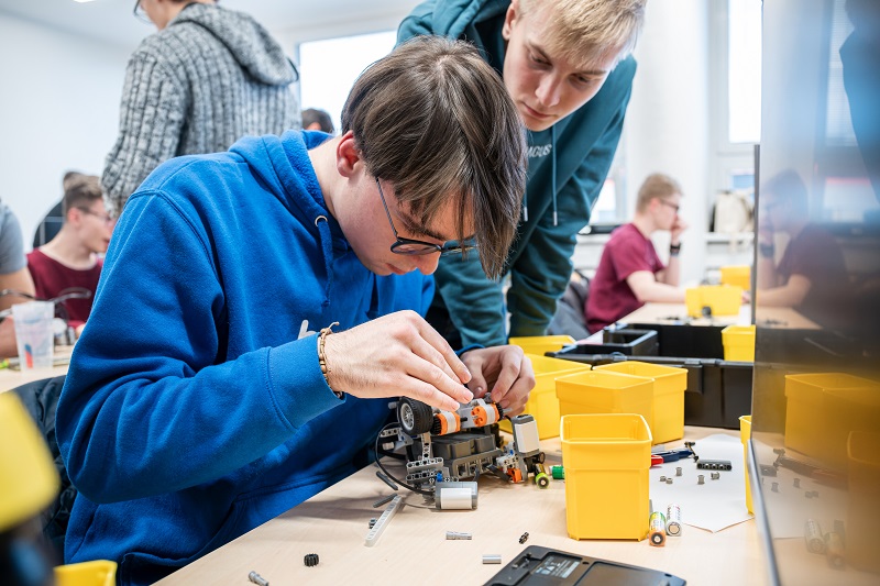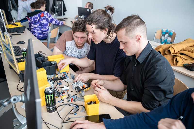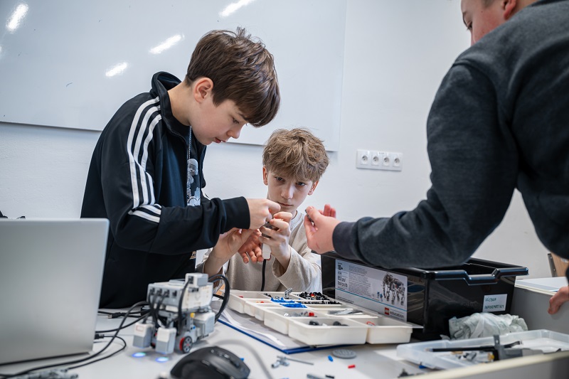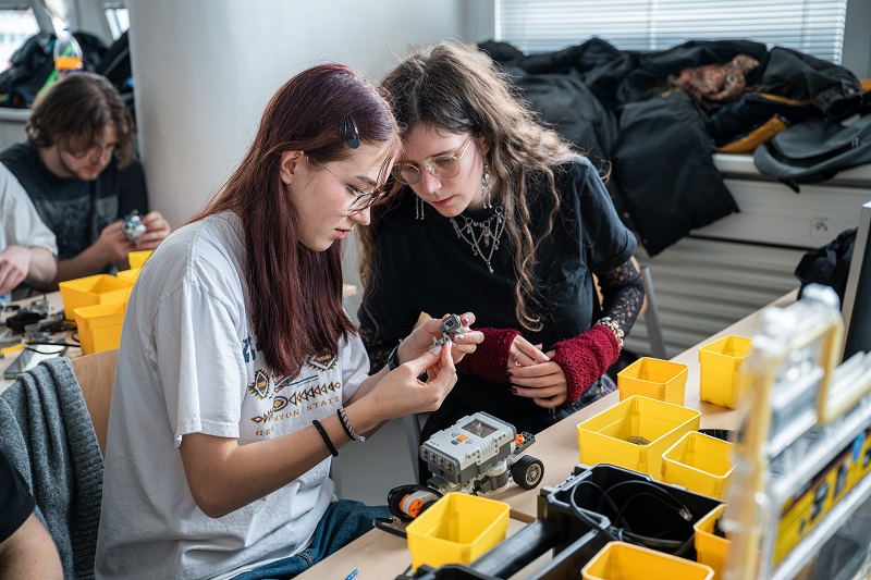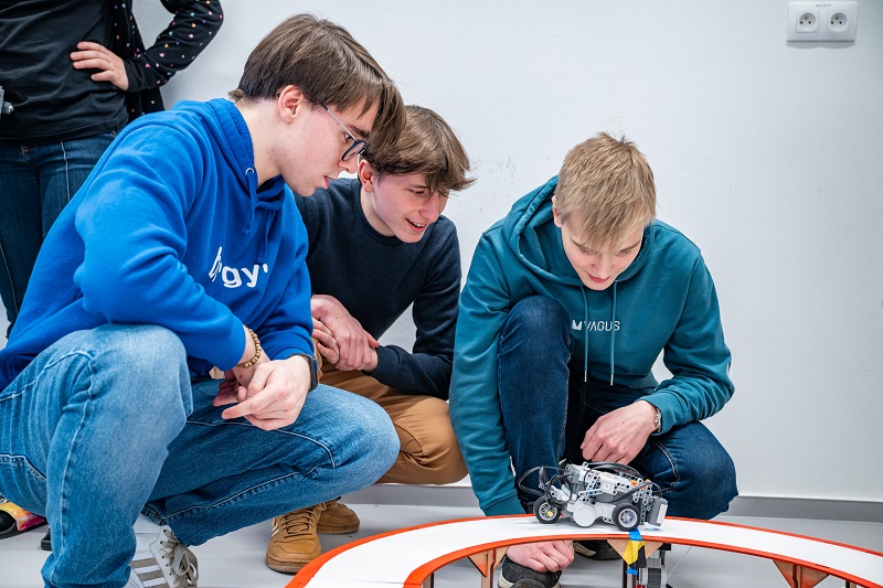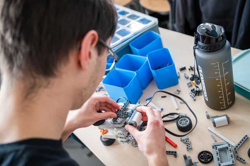 Třeba jako trojice kamarádů z týmu, který si dal název „Vysoká škola života engineers“. Andrea, Tomáš a Kuba se znají z projektu Expedice Mars. I když jsou z různých koutů republiky, zjistili, že jim spolupráce klape. „Všichni tři doma stavíme elektroniku, 3D tiskneme a baví nás robotika. Tady Tom je z Třeboně, Andy z Ostravy a já z Prahy,“ říká Kuba, zatímco pracuje na vylepšování jejich soutěžního robotu.