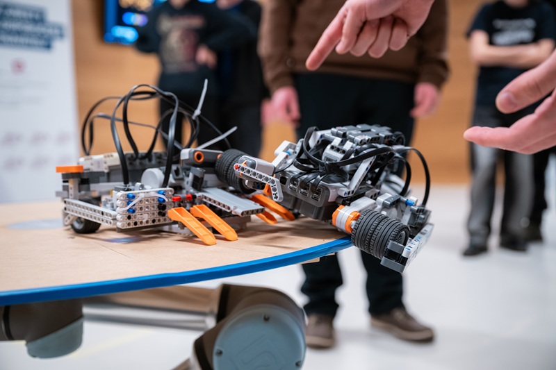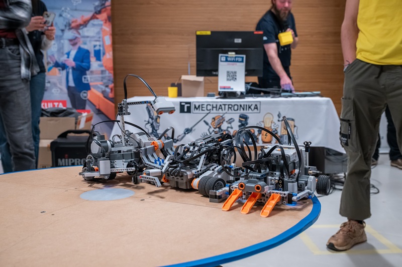 Lukáš Kičura se sklání nad stolem, za nímž sedí jeho kamarádi Pavol a Adrián. Na stole se povalují kousky LEGA, ale taky baterky, dráty a další materiál. „Přijeli jsme ze Slovenska z Prešova, studujeme na středí elektrotechnické škole. My dva konstruktéři studujeme elektrotechniku a kolega programátor informační technologie,“ vypráví ochotně Lukáš. Zatímco Pavol s Adriánem pokračují v práci na robotu, Lukáš se na chvíli stává mluvčím celé skupinky, která si dala název Speshari.