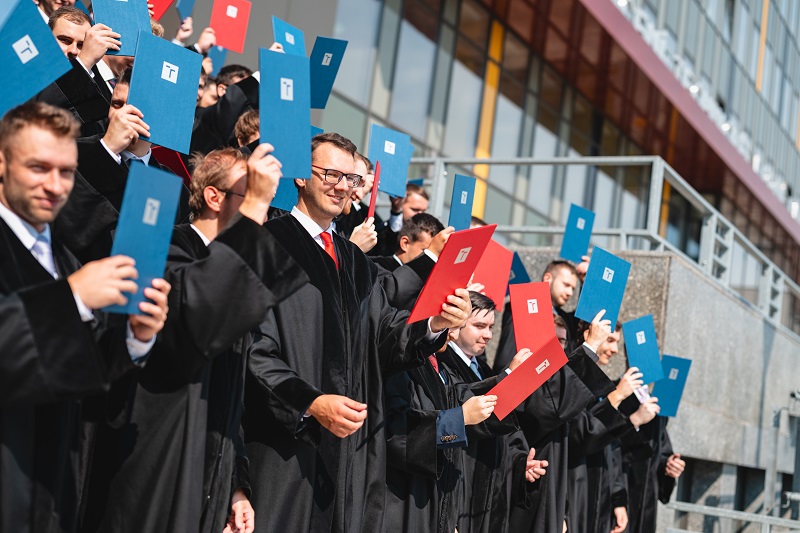 Průměrná mzda absolventa se za 9 let oproti nástupnímu platu ztrojnásobí a aktuálně dosahuje přibližně 170 % průměrné mzdy v ČR. Každý druhý po této době pracuje na manažerské pozici a 82 % absolventů říká jednoduše: jsem spokojený/á.
